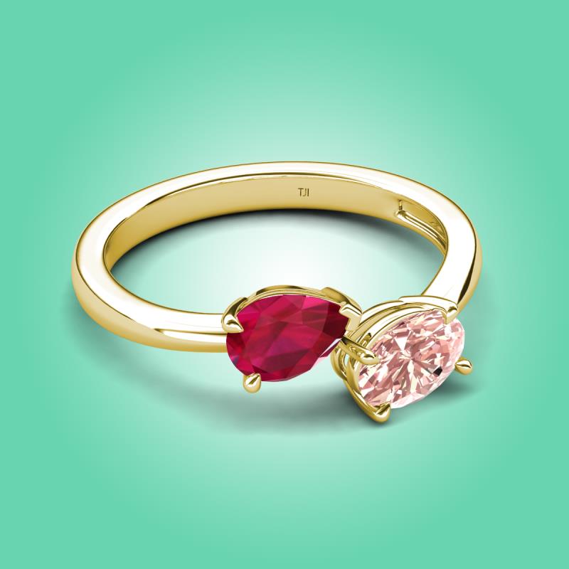 1.70 ctw Ruby Pear Shape 7x5 mm & Morganite Oval Shape 7x5 mm with Prong setting Two Stone Duo Women Engagement Ring in 18K Yellow Gold More Details ...