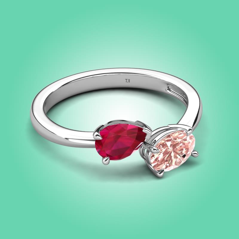 The Ruby Pear Shape and Morganite Oval Shape Toi Et Moi Duo Ring of 1.70 ctw is the perfect representation of your unique and everlasting bond. The pear and oval shaped gemstones set in a Prong setting, complement each other perfectly, creating a stunning and timeless design that will capture the heart of your loved one, symbolizing your eternal love and commitment that will last a lifetime.