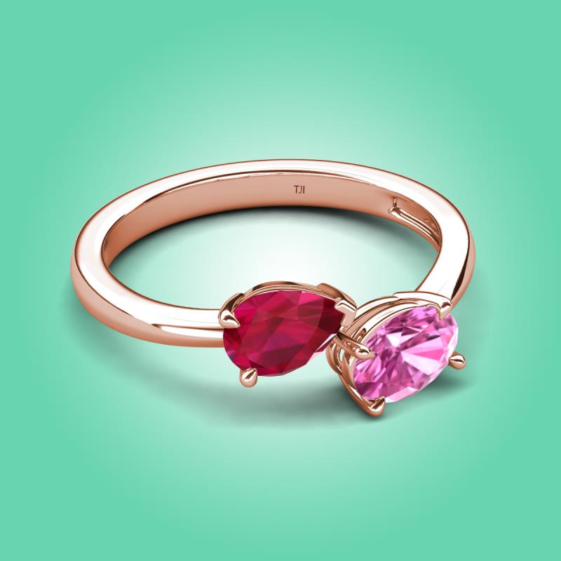 1.95 ctw Ruby Pear Shape 7x5 mm & Pink Sapphire Oval Shape 7x5 mm with Prong setting Two Stone Duo Women Engagement Ring in 14K Rose Gold More Details ...
