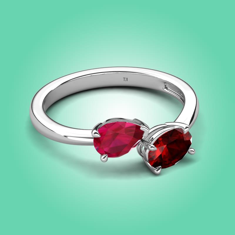 1.90 ctw Ruby Pear Shape 7x5 mm & Red Garnet Oval Shape 7x5 mm with Prong setting Two Stone Duo Women Engagement Ring in 14K White Gold More Details ...