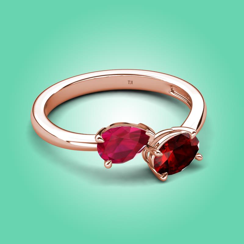 1.90 ctw Ruby Pear Shape 7x5 mm & Red Garnet Oval Shape 7x5 mm with Prong setting Two Stone Duo Women Engagement Ring in 18K Rose Gold More Details ...