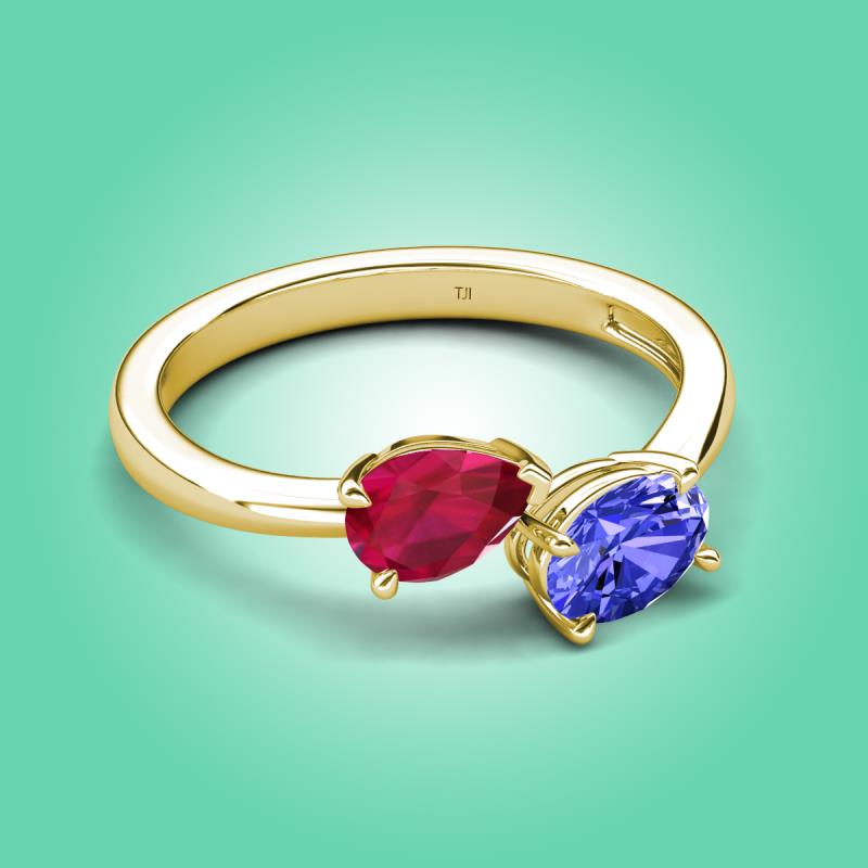 1.80 ctw Ruby Pear Shape 7x5 mm & Tanzanite Oval Shape 7x5 mm with Prong setting Two Stone Duo Women Engagement Ring in 18K Yellow Gold More Details ...
