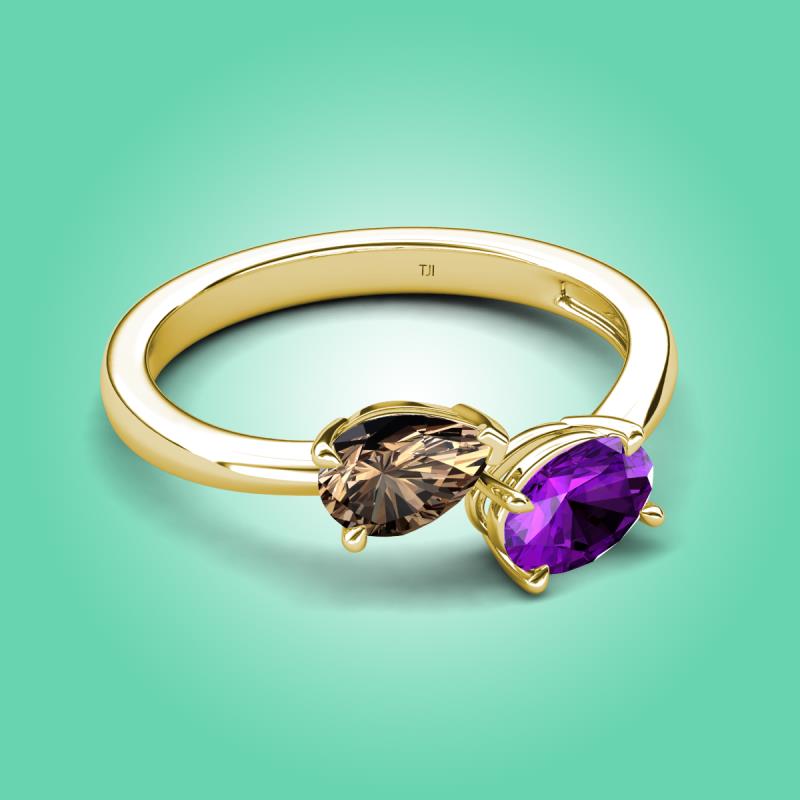 1.37 ctw Smoky Quartz Pear Shape 7x5 mm & Amethyst Oval Shape 7x5 mm with Prong setting Two Stone Duo Women Engagement Ring in 14K Yellow Gold More Details ...