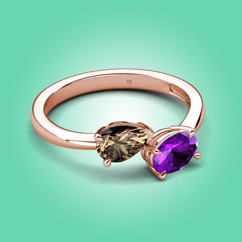 1.37 ctw Smoky Quartz Pear Shape 7x5 mm & Amethyst Oval Shape 7x5 mm with Prong setting Two Stone Duo Women Engagement Ring in 18K Rose Gold More Details ...