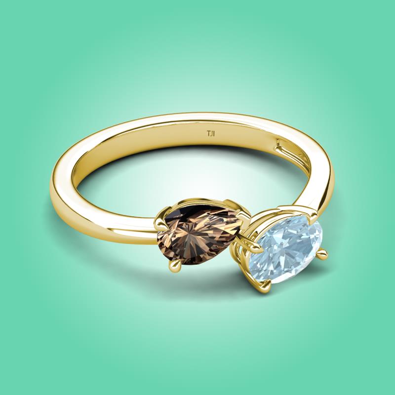 1.37 ctw Smoky Quartz Pear Shape 7x5 mm & Aquamarine Oval Shape 7x5 mm with Prong setting Two Stone Duo Women Engagement Ring in 18K Yellow Gold More Details ...