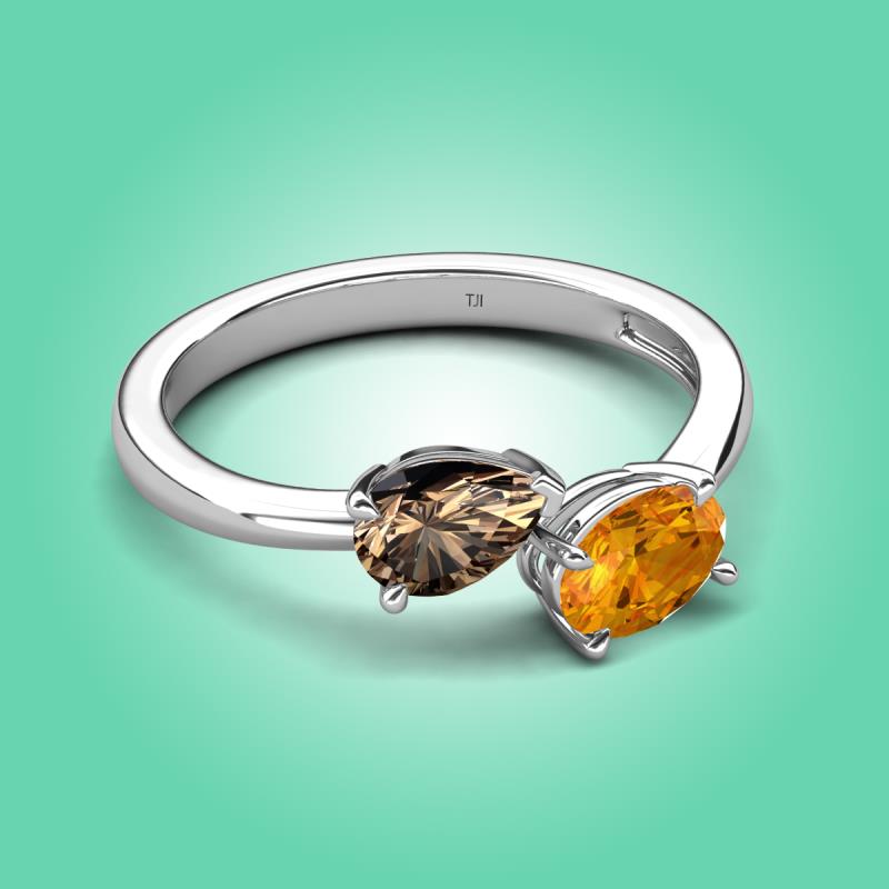 1.37 ctw Smoky Quartz Pear Shape 7x5 mm & Citrine Oval Shape 7x5 mm with Prong setting Two Stone Duo Women Engagement Ring in 14K White Gold More Details ...