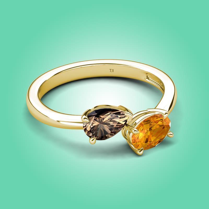 1.37 ctw Smoky Quartz Pear Shape 7x5 mm & Citrine Oval Shape 7x5 mm with Prong setting Two Stone Duo Women Engagement Ring in 14K Yellow Gold More Details ...