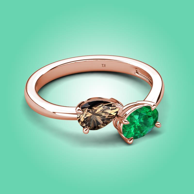1.45 ctw Smoky Quartz Pear Shape 7x5 mm & Emerald Oval Shape 7x5 mm with Prong setting Two Stone Duo Women Engagement Ring in 18K Rose Gold More Details ...