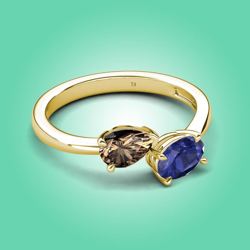 1.32 ctw Smoky Quartz Pear Shape 7x5 mm & Iolite Oval Shape 7x5 mm with Prong setting Two Stone Duo Women Engagement Ring in 14K Yellow Gold More Details ...