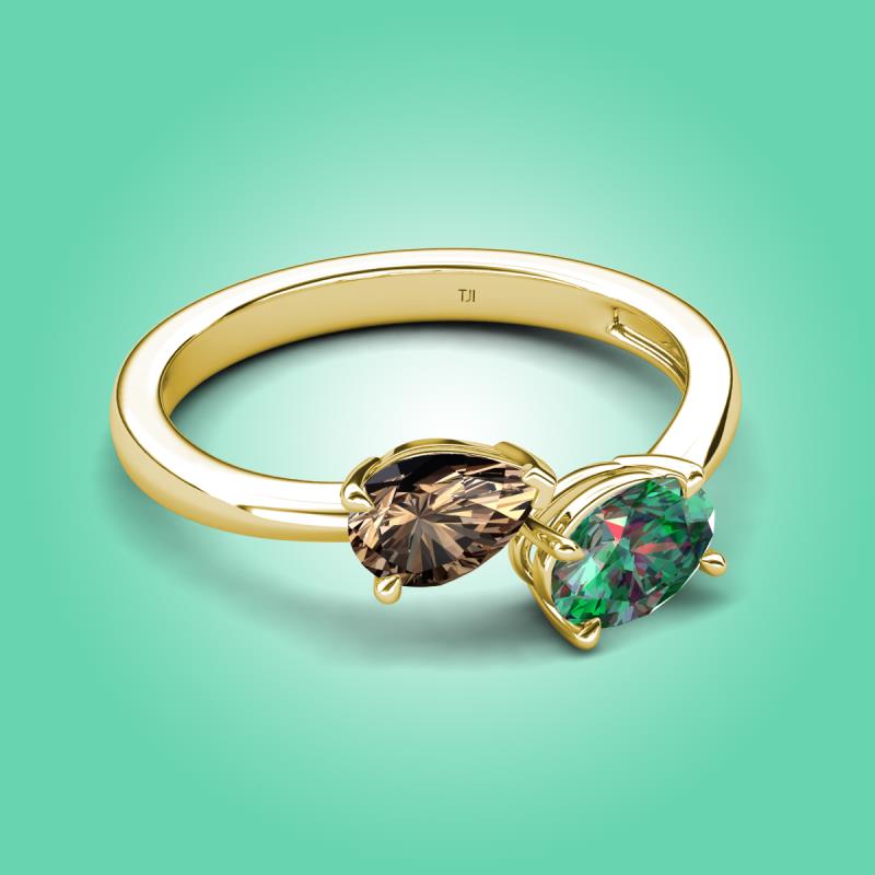 1.81 ctw Smoky Quartz Pear Shape 7x5 mm & Lab Created Alexandrite Oval Shape 7x5 mm with Prong setting Two Stone Duo Women Engagement Ring in 14K Yellow Gold More Details ...