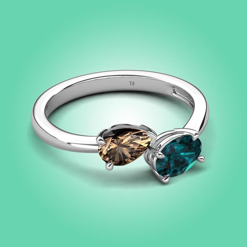 1.65 ctw Smoky Quartz Pear Shape 7x5 mm & London Blue Topaz Oval Shape 7x5 mm with Prong setting Two Stone Duo Women Engagement Ring in 18K White Gold More Details ...