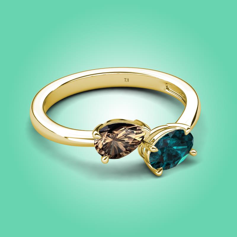 1.65 ctw Smoky Quartz Pear Shape 7x5 mm & London Blue Topaz Oval Shape 7x5 mm with Prong setting Two Stone Duo Women Engagement Ring in 18K Yellow Gold More Details ...