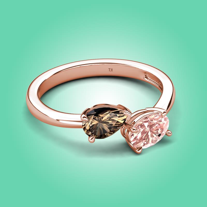 1.40 ctw Smoky Quartz Pear Shape 7x5 mm & Morganite Oval Shape 7x5 mm with Prong setting Two Stone Duo Women Engagement Ring in 14K Rose Gold More Details ...