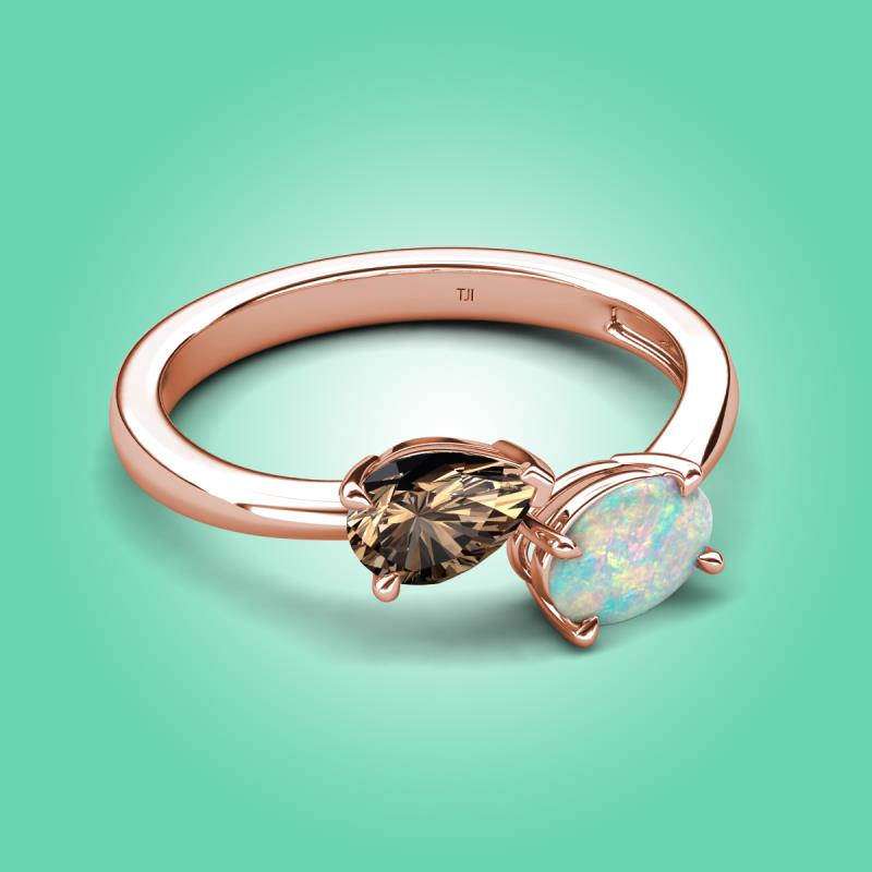 1.15 ctw Smoky Quartz Pear Shape 7x5 mm & Opal Oval Shape 7x5 mm with Prong setting Two Stone Duo Women Engagement Ring in 18K Rose Gold More Details ...