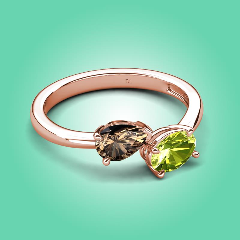 • 1 Smoky Quartz Pear Shape 0.65 ctw/7x5 mm and 1 Peridot Oval Shape 0.90 ctw/7x5 mm Two Stone Duo Engagement Ring set in a Prong Setting.