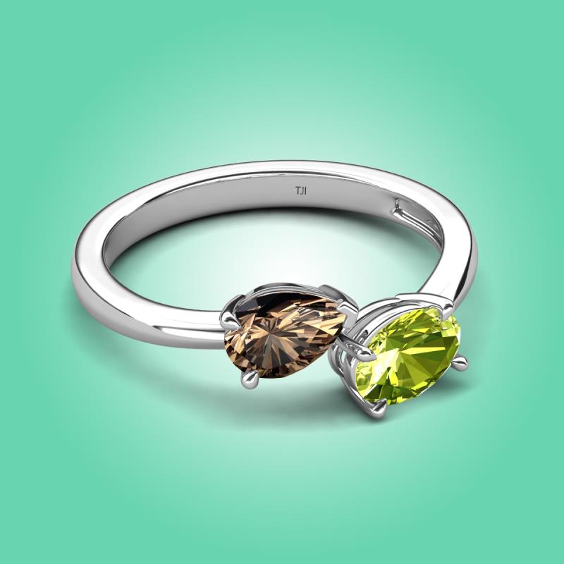 1.55 ctw Smoky Quartz Pear Shape 7x5 mm & Peridot Oval Shape 7x5 mm with Prong setting Two Stone Duo Women Engagement Ring in 14K White Gold More Details ...