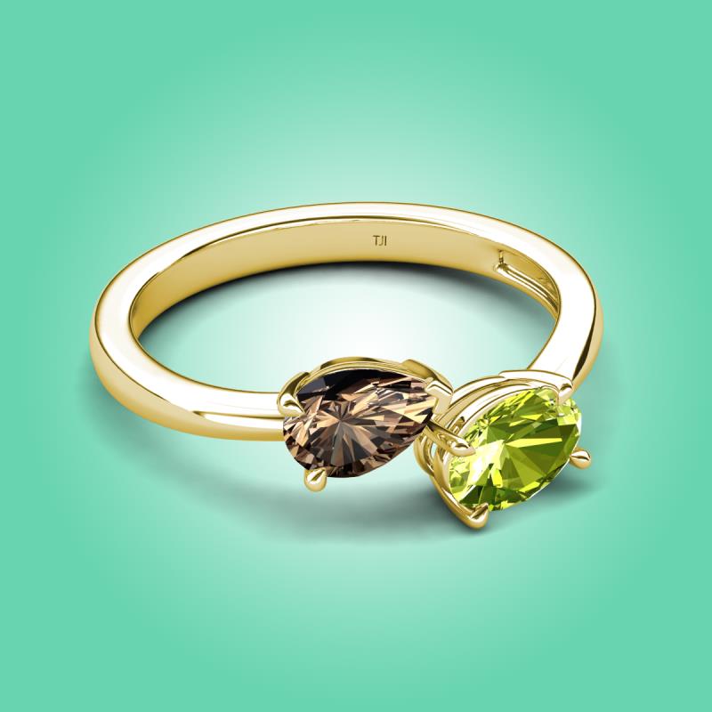1.55 ctw Smoky Quartz Pear Shape 7x5 mm & Peridot Oval Shape 7x5 mm with Prong setting Two Stone Duo Women Engagement Ring in 18K Yellow Gold More Details ...