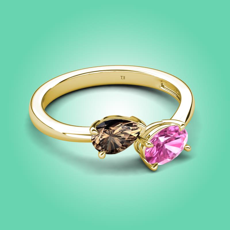 1.65 ctw Smoky Quartz Pear Shape 7x5 mm & Pink Sapphire Oval Shape 7x5 mm with Prong setting Two Stone Duo Women Engagement Ring in 14K Yellow Gold More Details ...