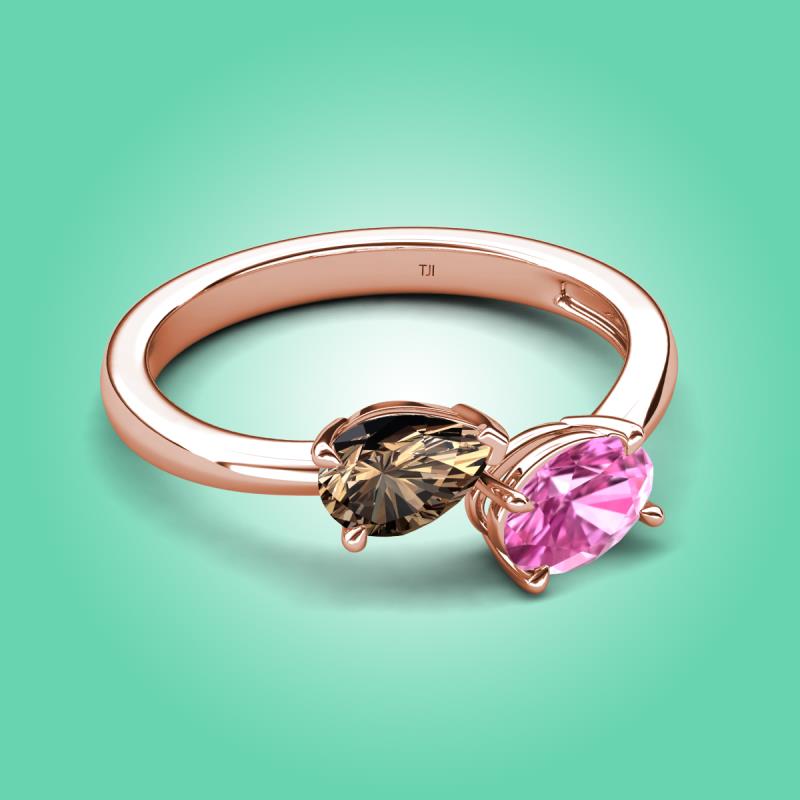 1.65 ctw Smoky Quartz Pear Shape 7x5 mm & Pink Sapphire Oval Shape 7x5 mm with Prong setting Two Stone Duo Women Engagement Ring in 18K Rose Gold More Details ...