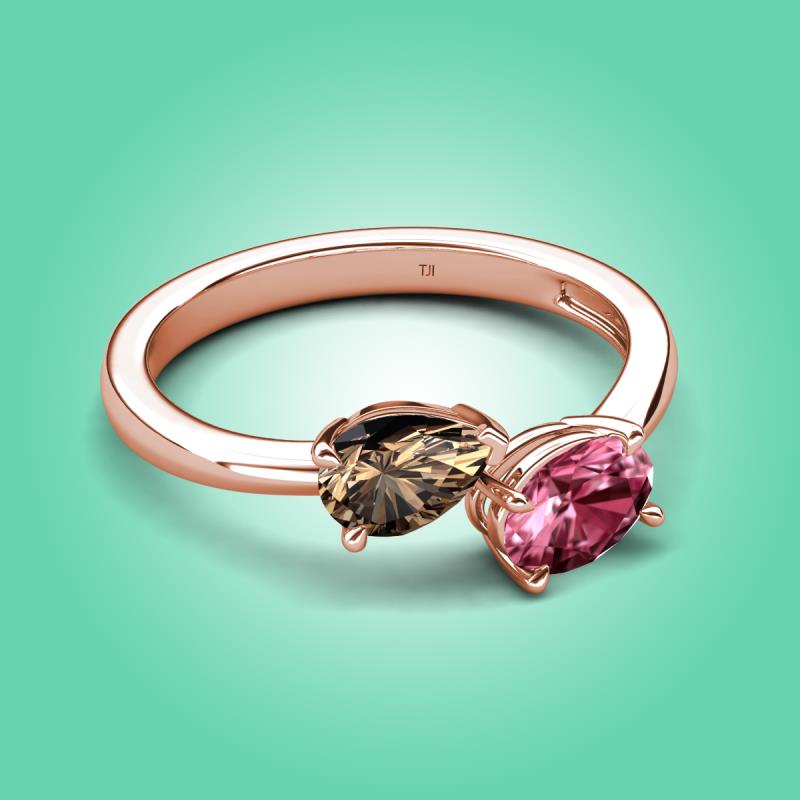 1.50 ctw Smoky Quartz Pear Shape 7x5 mm & Pink Tourmaline Oval Shape 7x5 mm with Prong setting Two Stone Duo Women Engagement Ring in 14K Rose Gold More Details ...