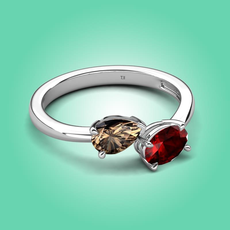 1.60 ctw Smoky Quartz Pear Shape 7x5 mm & Red Garnet Oval Shape 7x5 mm with Prong setting Two Stone Duo Women Engagement Ring in Platinum More Details ...