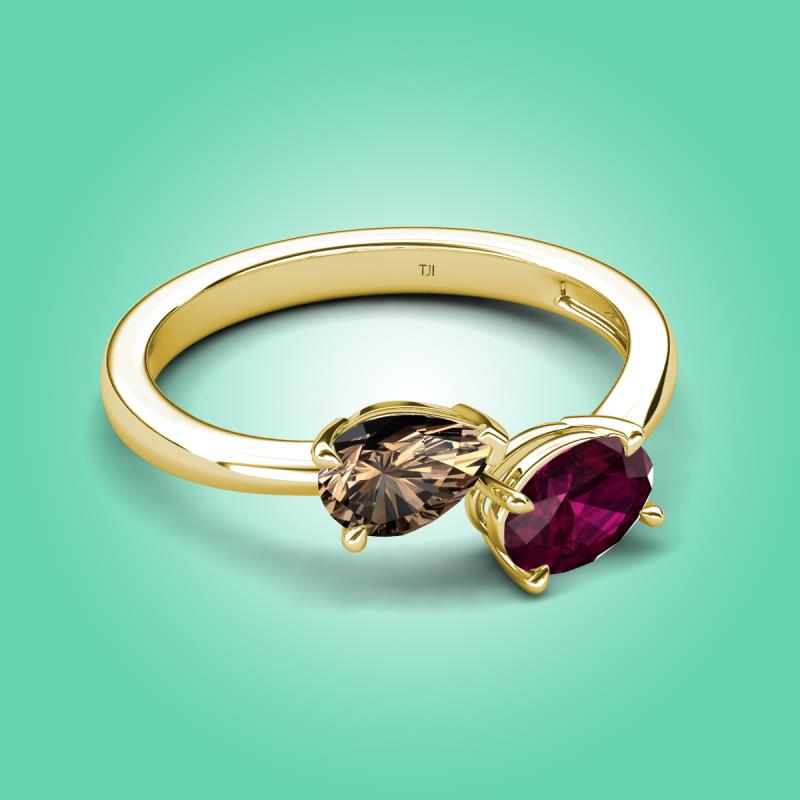 1.65 ctw Smoky Quartz Pear Shape 7x5 mm & Rhodolite Garnet Oval Shape 7x5 mm with Prong setting Two Stone Duo Women Engagement Ring in 18K Yellow Gold More Details ...