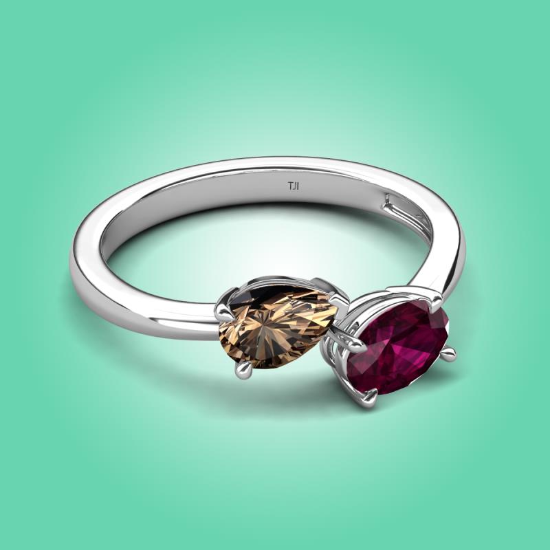 1.65 ctw Smoky Quartz Pear Shape 7x5 mm & Rhodolite Garnet Oval Shape 7x5 mm with Prong setting Two Stone Duo Women Engagement Ring in Platinum More Details ...