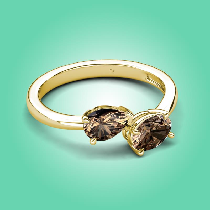 1.40 ctw Smoky Quartz Pear Shape 7x5 mm & Smoky Quartz Oval Shape 7x5 mm with Prong setting Two Stone Duo Women Engagement Ring in 10K Yellow Gold More Details ...