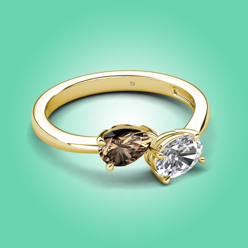 1.65 ctw Smoky Quartz Pear Shape 7x5 mm & White Sapphire Oval Shape 7x5 mm with Prong setting Two Stone Duo Women Engagement Ring in 18K Yellow Gold More Details ...