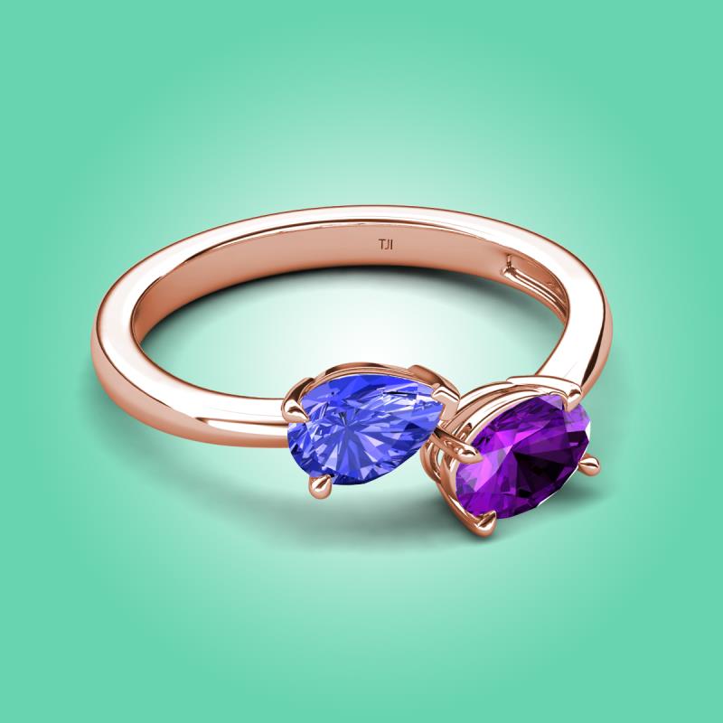 1.47 ctw Tanzanite Pear Shape 7x5 mm & Amethyst Oval Shape 7x5 mm with Prong setting Two Stone Duo Women Engagement Ring in 14K Rose Gold More Details ...