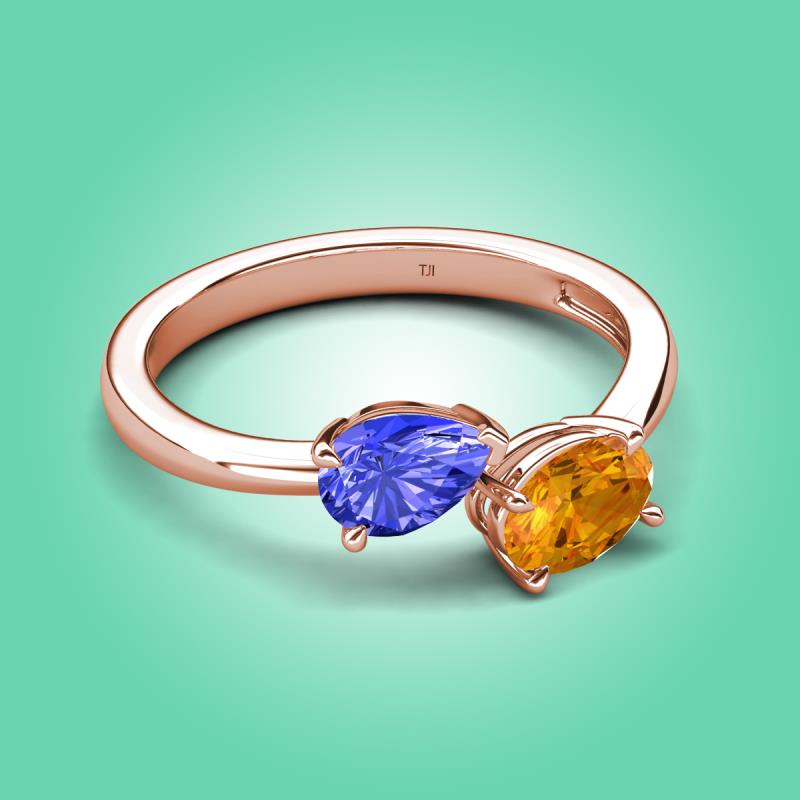 1.47 ctw Tanzanite Pear Shape 7x5 mm & Citrine Oval Shape 7x5 mm with Prong setting Two Stone Duo Women Engagement Ring in 18K Rose Gold More Details ...