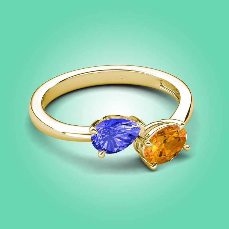 1.47 ctw Tanzanite Pear Shape 7x5 mm & Citrine Oval Shape 7x5 mm with Prong setting Two Stone Duo Women Engagement Ring in 18K Yellow Gold More Details ...