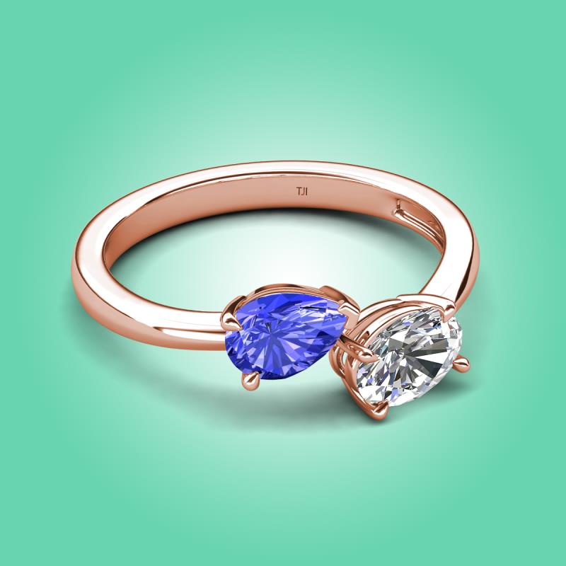 1.55 ctw Tanzanite Pear Shape 7x5 mm & GIA Certified Natural Diamond Oval Shape 7x5 mm with Prong setting Two Stone Duo Women Engagement Ring in 18K Rose Gold More Details ...