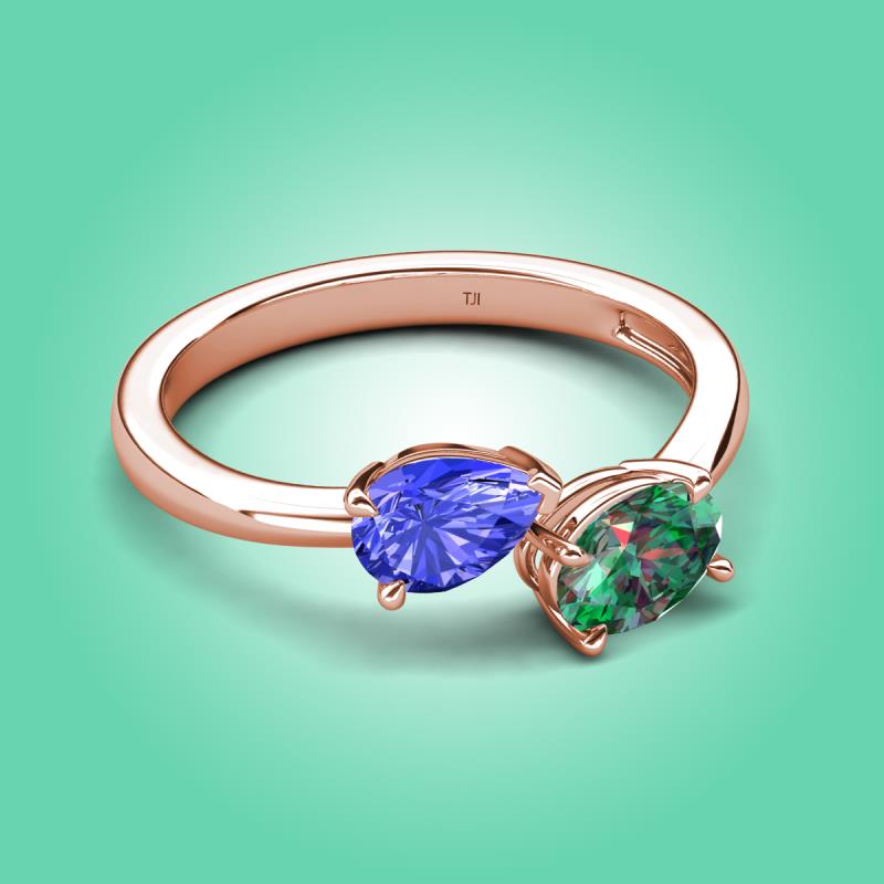 1.91 ctw Tanzanite Pear Shape 7x5 mm & Lab Created Alexandrite Oval Shape 7x5 mm with Prong setting Two Stone Duo Women Engagement Ring in 14K Rose Gold More Details ...