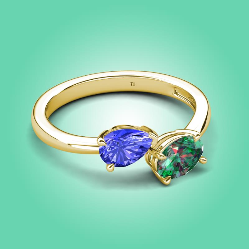 1.91 ctw Tanzanite Pear Shape 7x5 mm & Lab Created Alexandrite Oval Shape 7x5 mm with Prong setting Two Stone Duo Women Engagement Ring in 18K Yellow Gold More Details ...