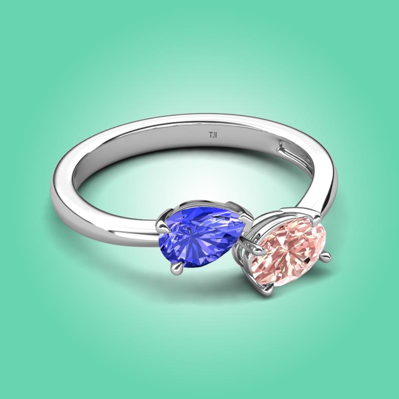 1.50 ctw Tanzanite Pear Shape 7x5 mm & Morganite Oval Shape 7x5 mm with Prong setting Two Stone Duo Women Engagement Ring in 18K White Gold More Details ...