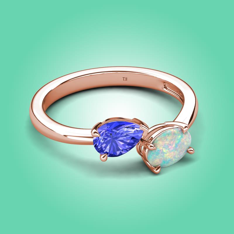 1.25 ctw Tanzanite Pear Shape 7x5 mm & Opal Oval Shape 7x5 mm with Prong setting Two Stone Duo Women Engagement Ring in 14K Rose Gold More Details ...