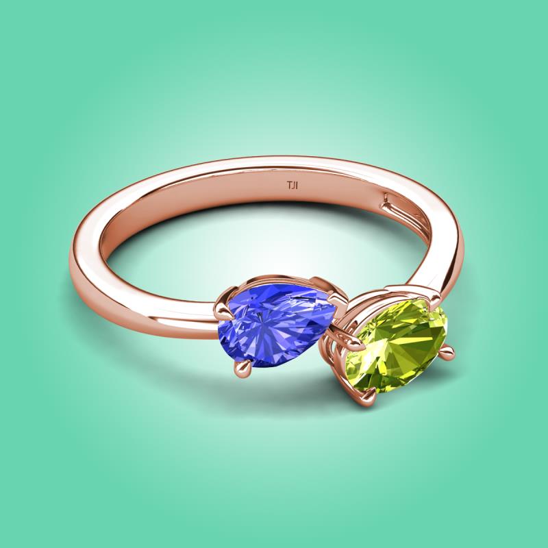 1.65 ctw Tanzanite Pear Shape 7x5 mm & Peridot Oval Shape 7x5 mm with Prong setting Two Stone Duo Women Engagement Ring in 18K Rose Gold More Details ...