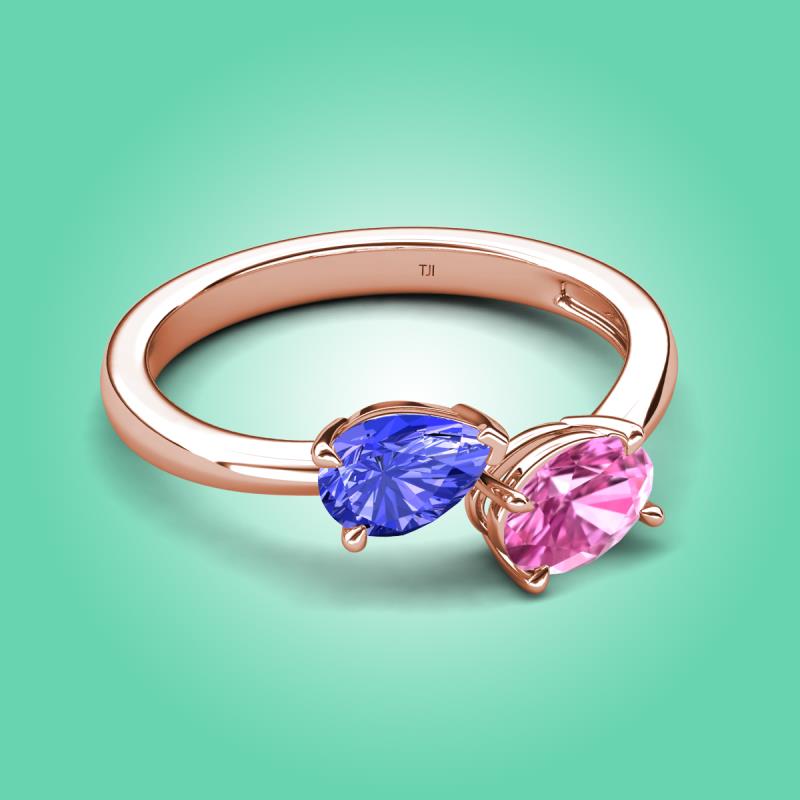 1.75 ctw Tanzanite Pear Shape 7x5 mm & Pink Sapphire Oval Shape 7x5 mm with Prong setting Two Stone Duo Women Engagement Ring in 14K Rose Gold More Details ...