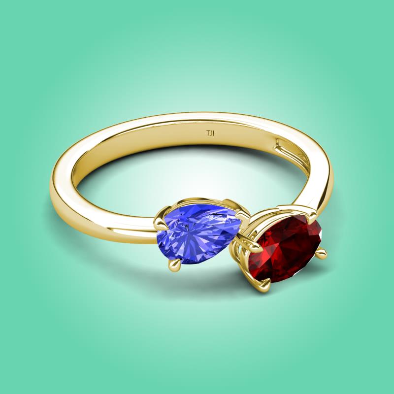 1.70 ctw Tanzanite Pear Shape 7x5 mm & Red Garnet Oval Shape 7x5 mm with Prong setting Two Stone Duo Women Engagement Ring in 14K Yellow Gold More Details ...