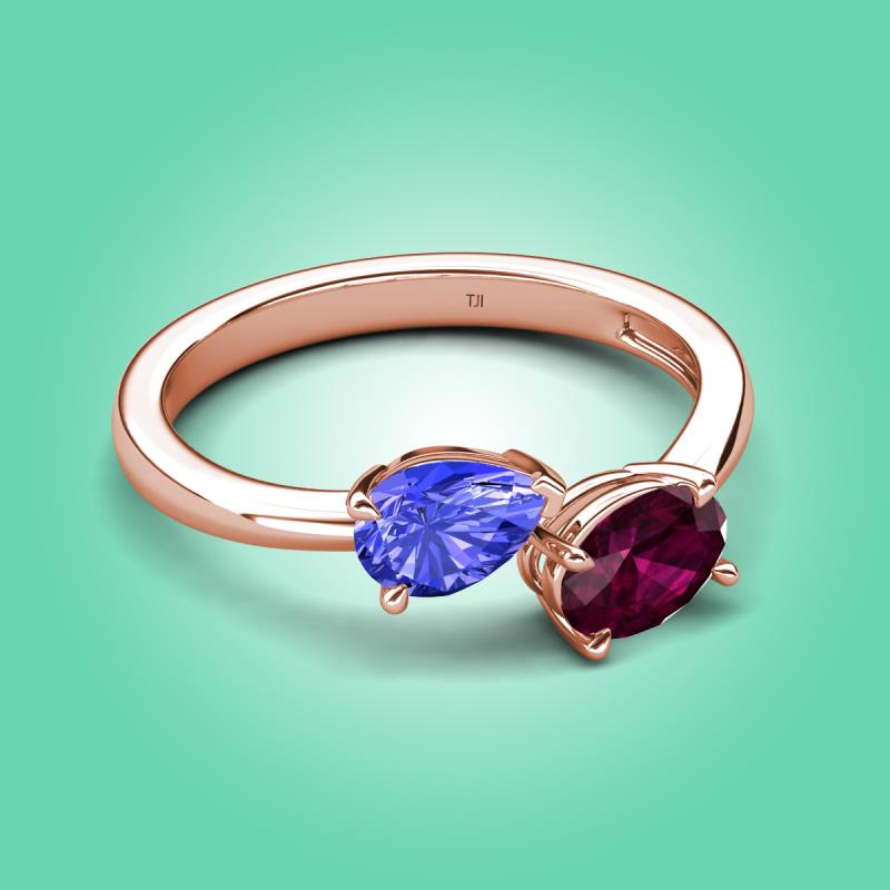 1.75 ctw Tanzanite Pear Shape 7x5 mm & Rhodolite Garnet Oval Shape 7x5 mm with Prong setting Two Stone Duo Women Engagement Ring in 18K Rose Gold More Details ...