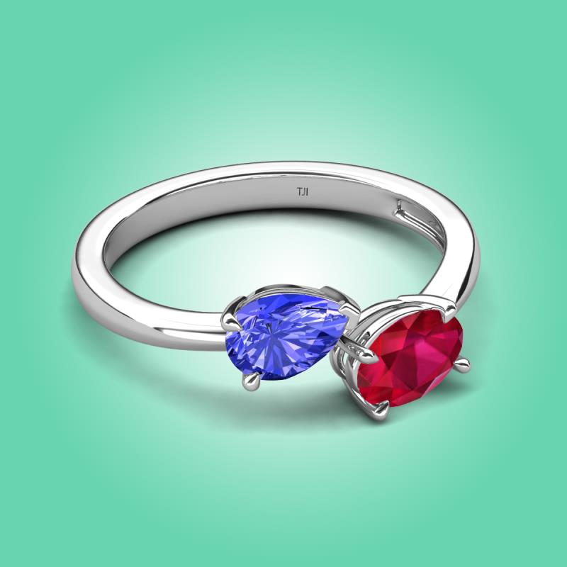1.65 ctw Tanzanite Pear Shape 7x5 mm & Ruby Oval Shape 7x5 mm with Prong setting Two Stone Duo Women Engagement Ring in 10K White Gold More Details ...