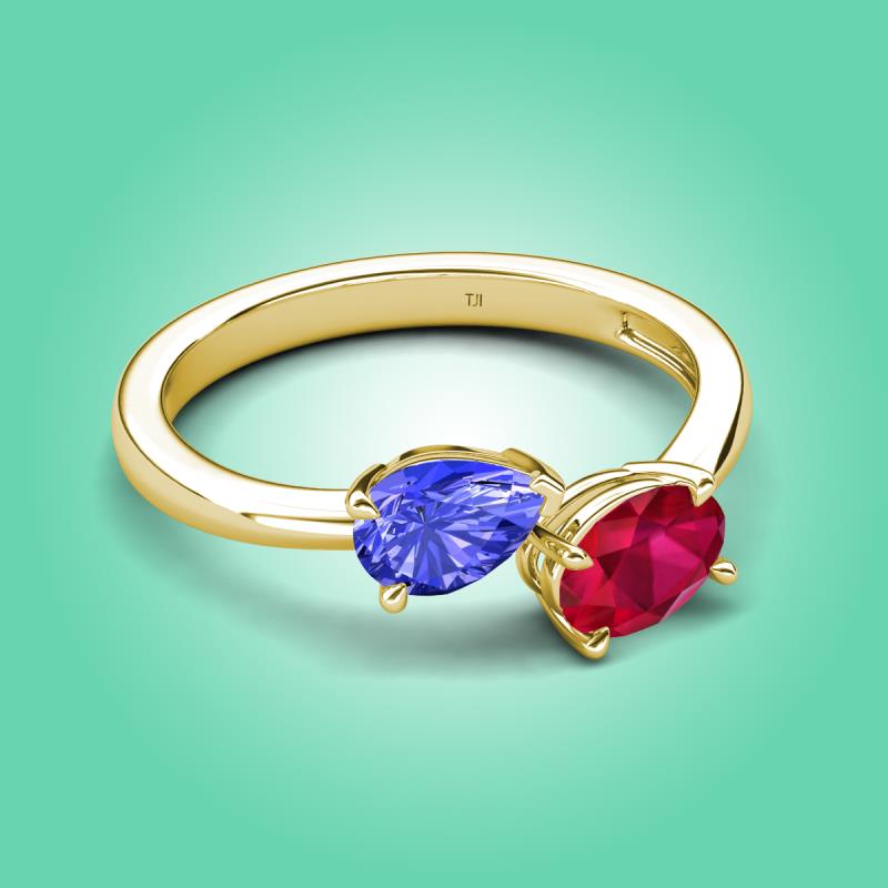 1.65 ctw Tanzanite Pear Shape 7x5 mm & Ruby Oval Shape 7x5 mm with Prong setting Two Stone Duo Women Engagement Ring in 10K Yellow Gold More Details ...