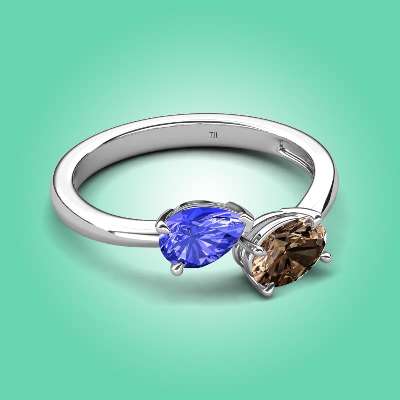 1.50 ctw Tanzanite Pear Shape 7x5 mm & Smoky Quartz Oval Shape 7x5 mm with Prong setting Two Stone Duo Women Engagement Ring in Platinum More Details ...