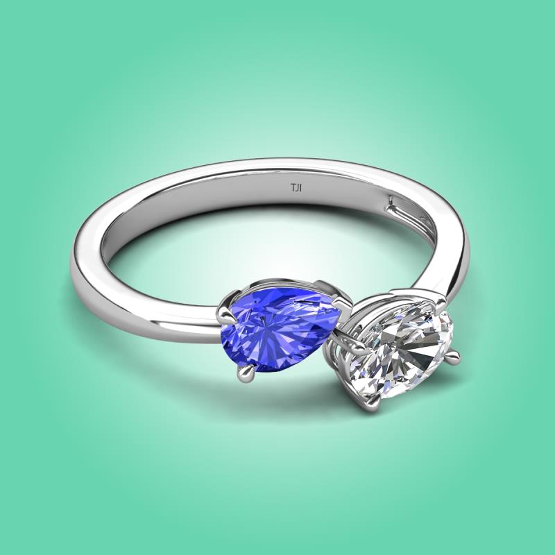 1.75 ctw Tanzanite Pear Shape 7x5 mm & White Sapphire Oval Shape 7x5 mm with Prong setting Two Stone Duo Women Engagement Ring in Platinum More Details ...
