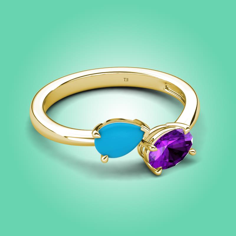1.07 ctw Turquoise Pear Shape 7x5 mm & Amethyst Oval Shape 7x5 mm with Prong setting Two Stone Duo Women Engagement Ring in 18K Yellow Gold More Details ...