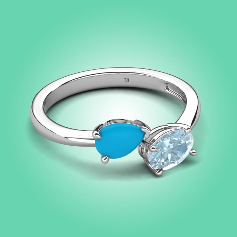 1.07 ctw Turquoise Pear Shape 7x5 mm & Aquamarine Oval Shape 7x5 mm with Prong setting Two Stone Duo Women Engagement Ring in 14K White Gold More Details ...