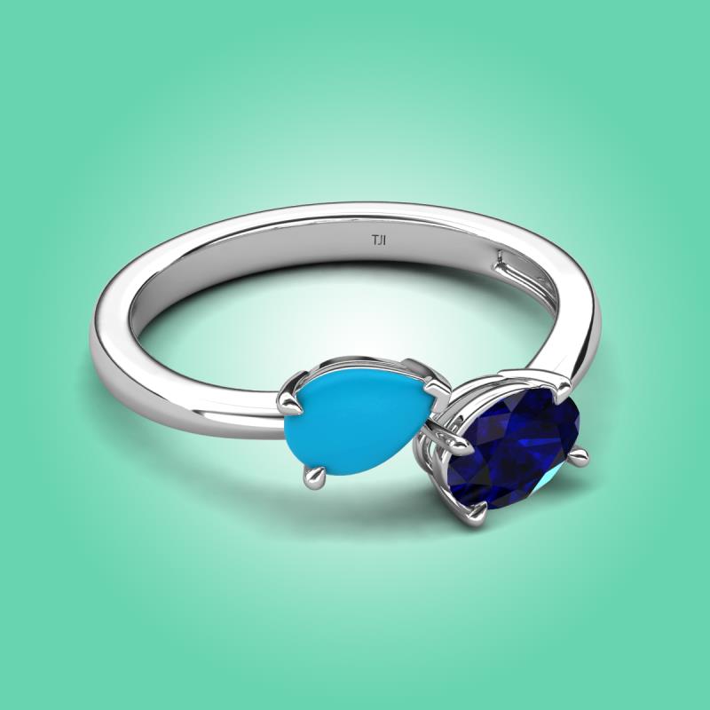 1.25 ctw Turquoise Pear Shape 7x5 mm & Blue Sapphire Oval Shape 7x5 mm with Prong setting Two Stone Duo Women Engagement Ring in 14K White Gold More Details ...