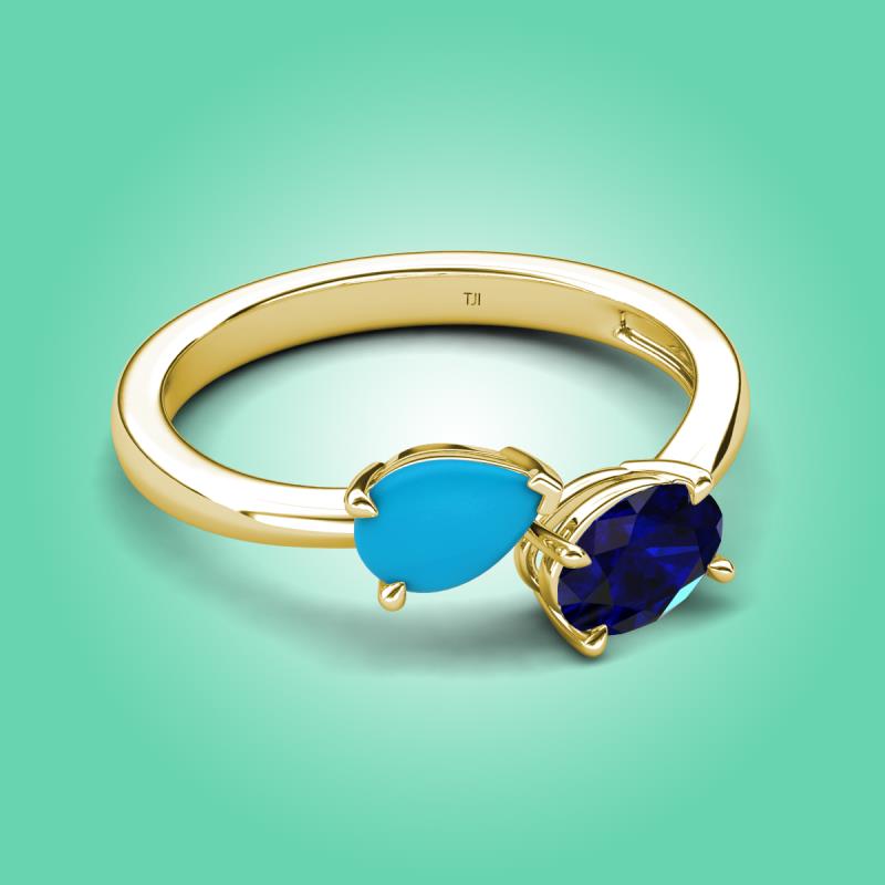 1.25 ctw Turquoise Pear Shape 7x5 mm & Blue Sapphire Oval Shape 7x5 mm with Prong setting Two Stone Duo Women Engagement Ring in 14K Yellow Gold More Details ...