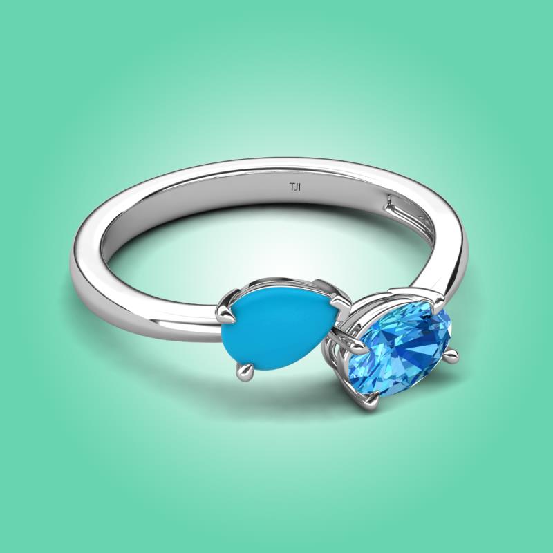 1.35 ctw Turquoise Pear Shape 7x5 mm & Blue Topaz Oval Shape 7x5 mm with Prong setting Two Stone Duo Women Engagement Ring in Platinum More Details ...